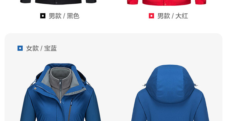 特性:男女款三合一、三件套沖鋒衣,可拆卸