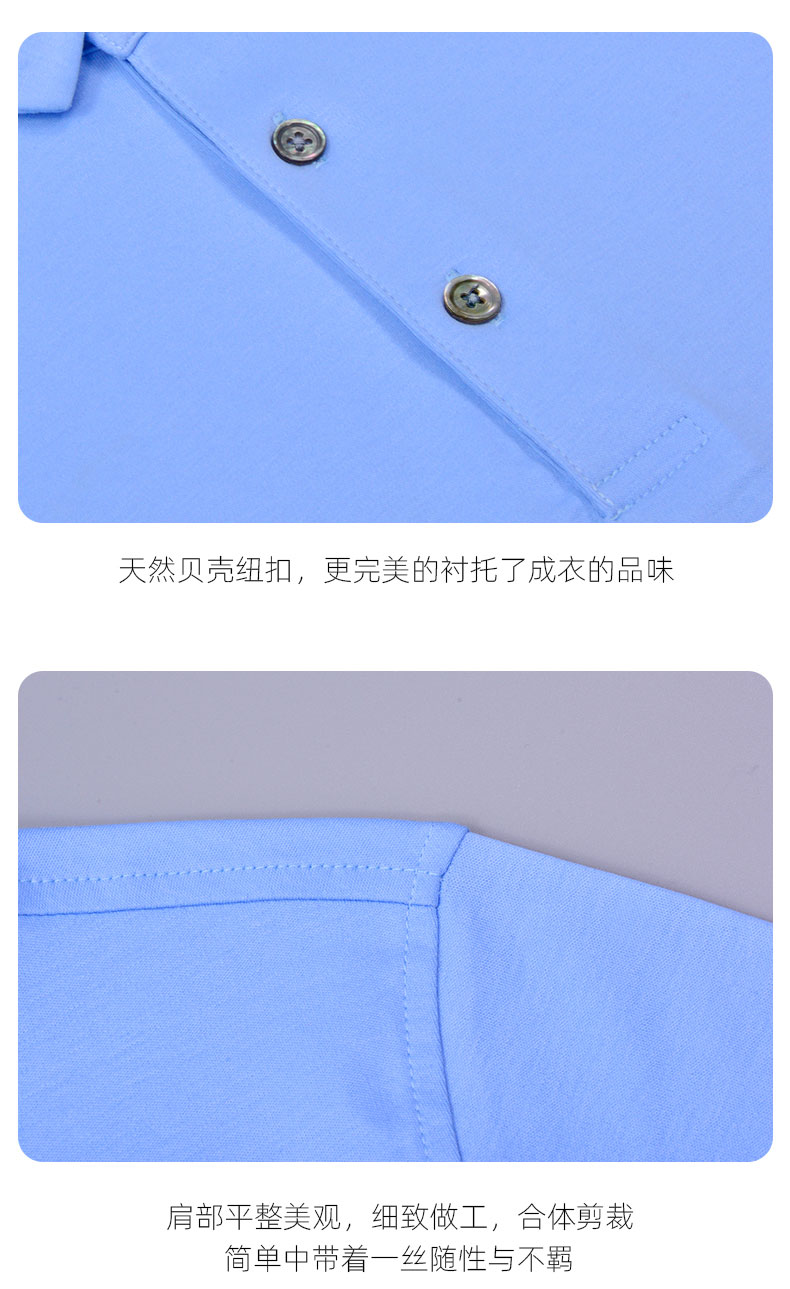 發明專利面料,絲光領袖,充滿設計感的扣子,更完美的襯托了成衣的平紋