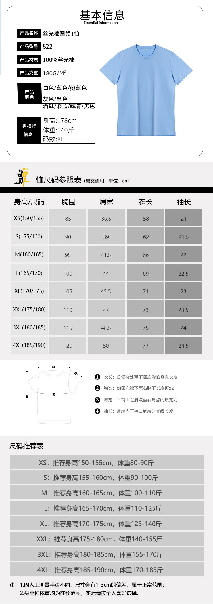 185g 經(jīng)典黑白灰T,柔軟舒適,親膚透氣